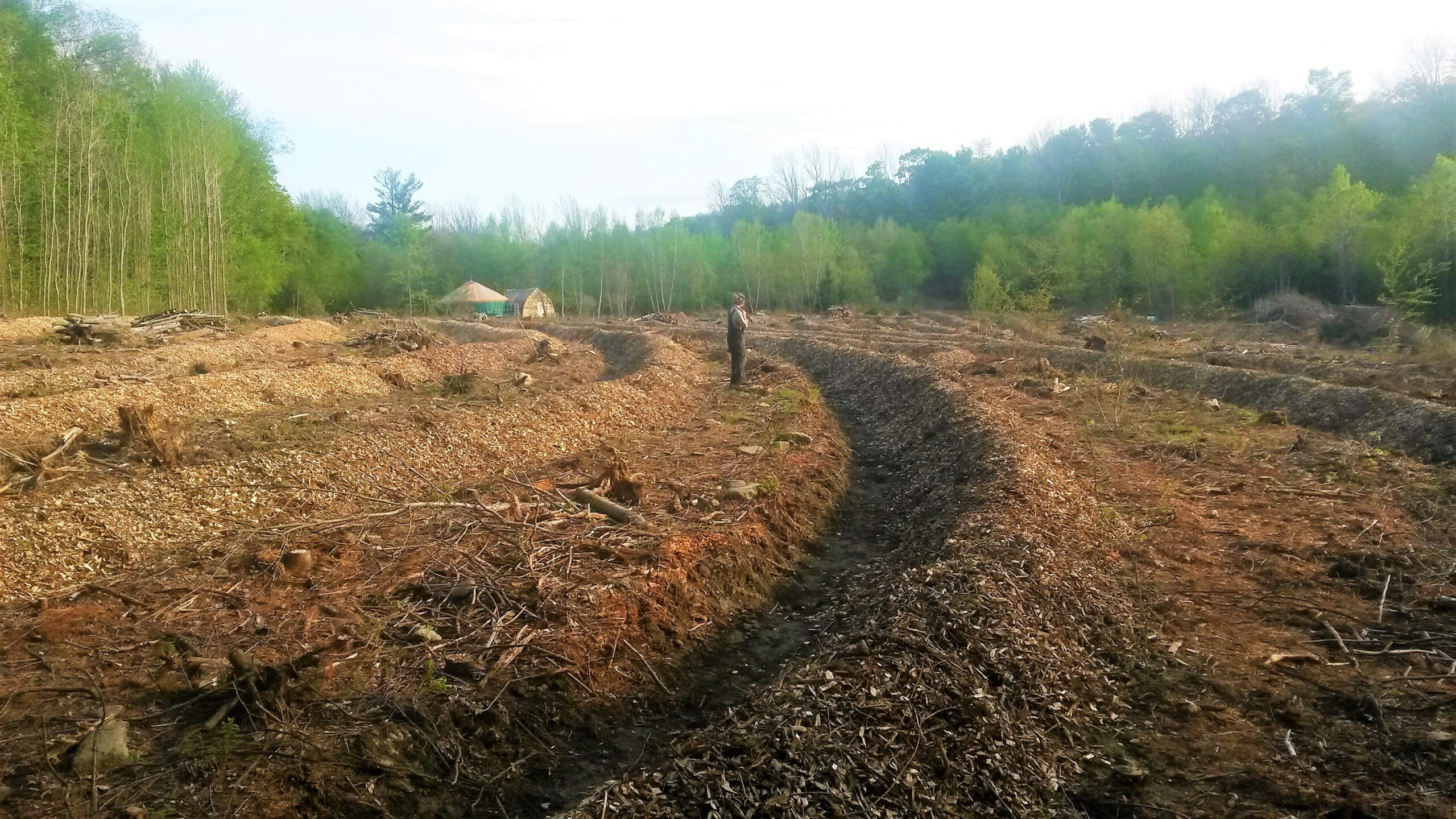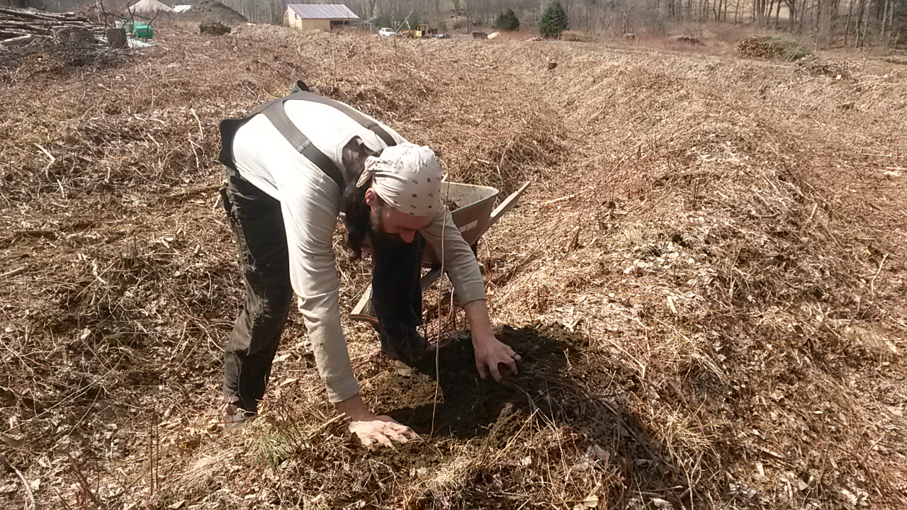 Most earthworks projects are a one-time intervention that will vastly improve the health of the agroecosystem for tens or hundreds of years. Many farms use a side-throwing plow or an excavator to dig and shape their earthworks system. To be effective, new swales and berms should be planted and mulched as soon as possible to prevent soil erosion and rebuild the soil structure. The alleys in between the swales and berms can also be planted with annual crops, grazed by animals, or used for hay production. Integrating perennial crops and livestock has been demonstrated to sequester carbon very effectively and support extremely healthy and diverse soil microbiology.