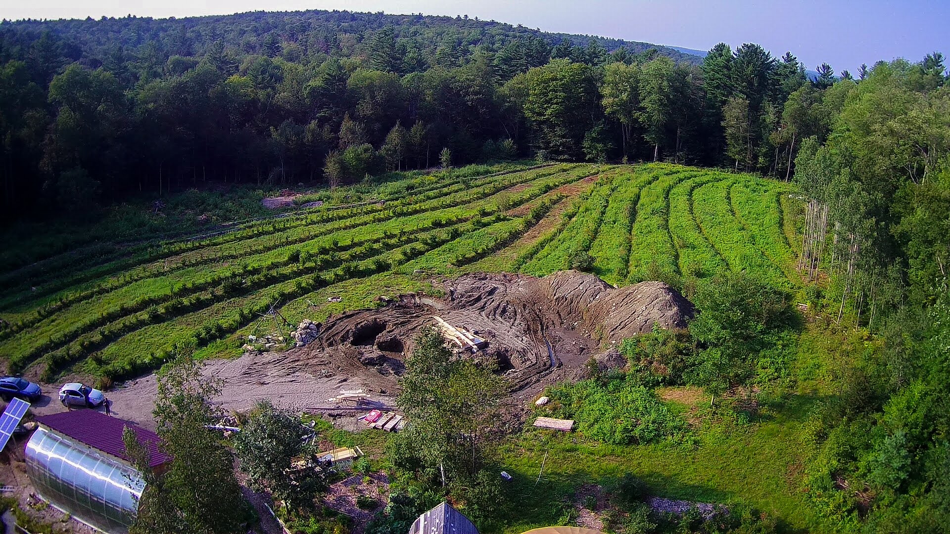 A technique often used in Regenerative Agriculture, “earthworks” are practices that alter the slope or contour of the land to better harvest, store, and distribute water. Installing earthworks on sloped land is an ecological method that has been used by small-scale farmers around the world for thousands of years. When used in conjunction with low- or no-till operations and perennial crops, it is very effective in reducing soil erosion and improving water retention, enhancing the overall agro-ecosystem.